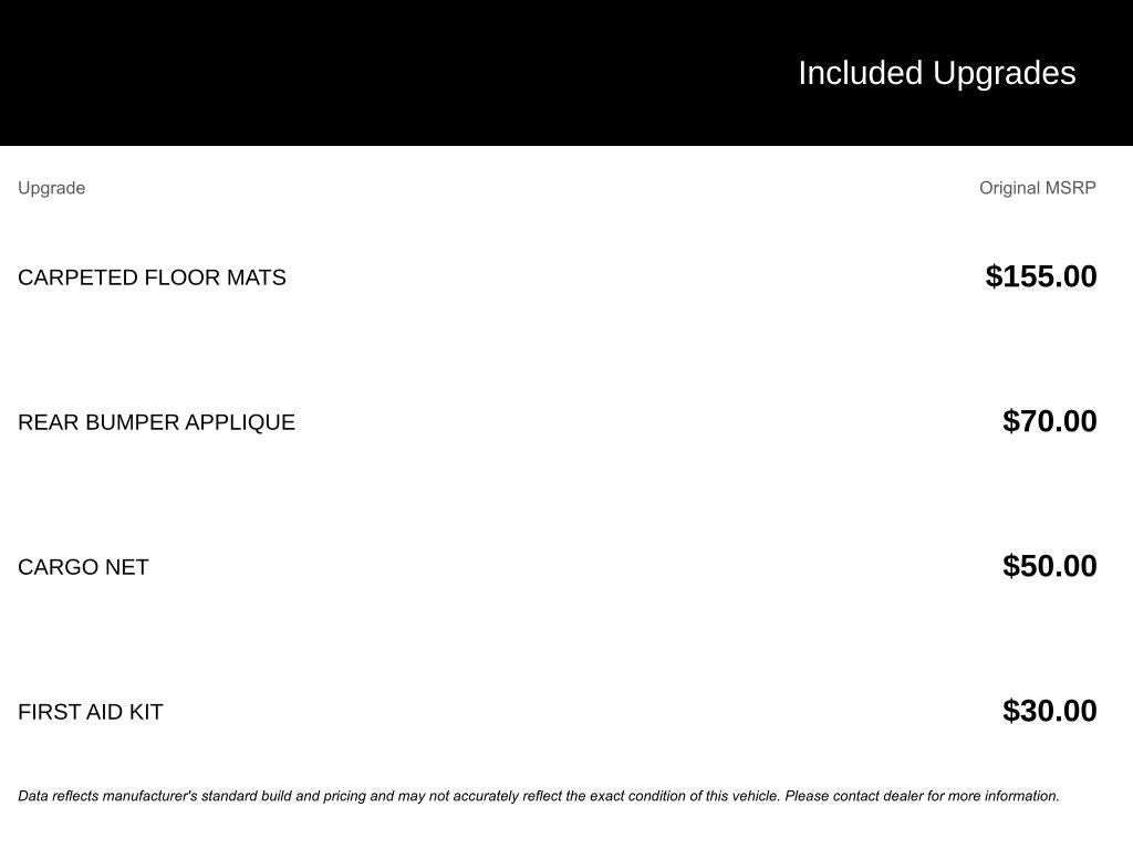- Interior Trim -inc: Metal-Look Instrument Panel Insert, Metal-Look Door Panel Insert, Piano Black/Metal-Look Console Insert and Metal-Look Interior Accents