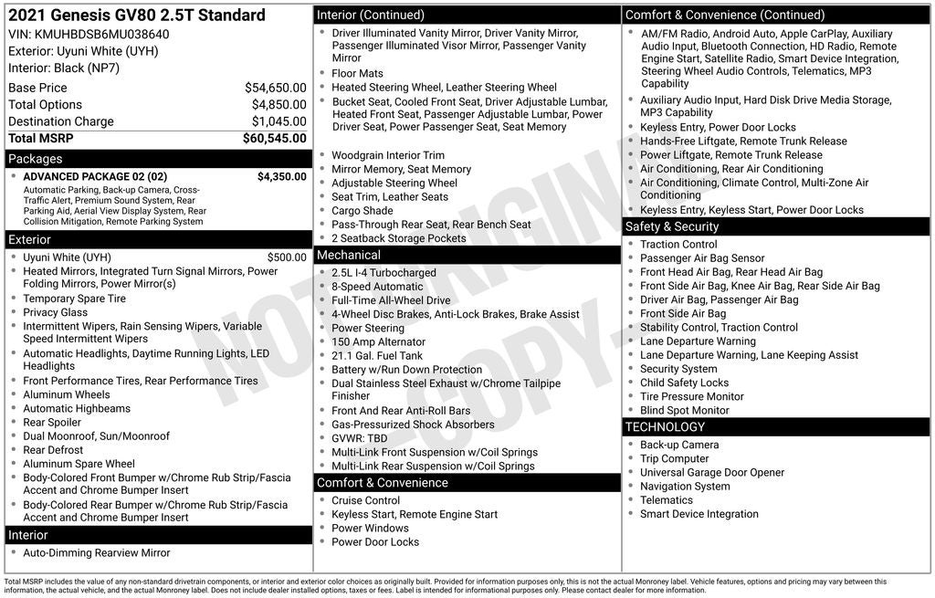 - Vehicle Name: Genesis GV80