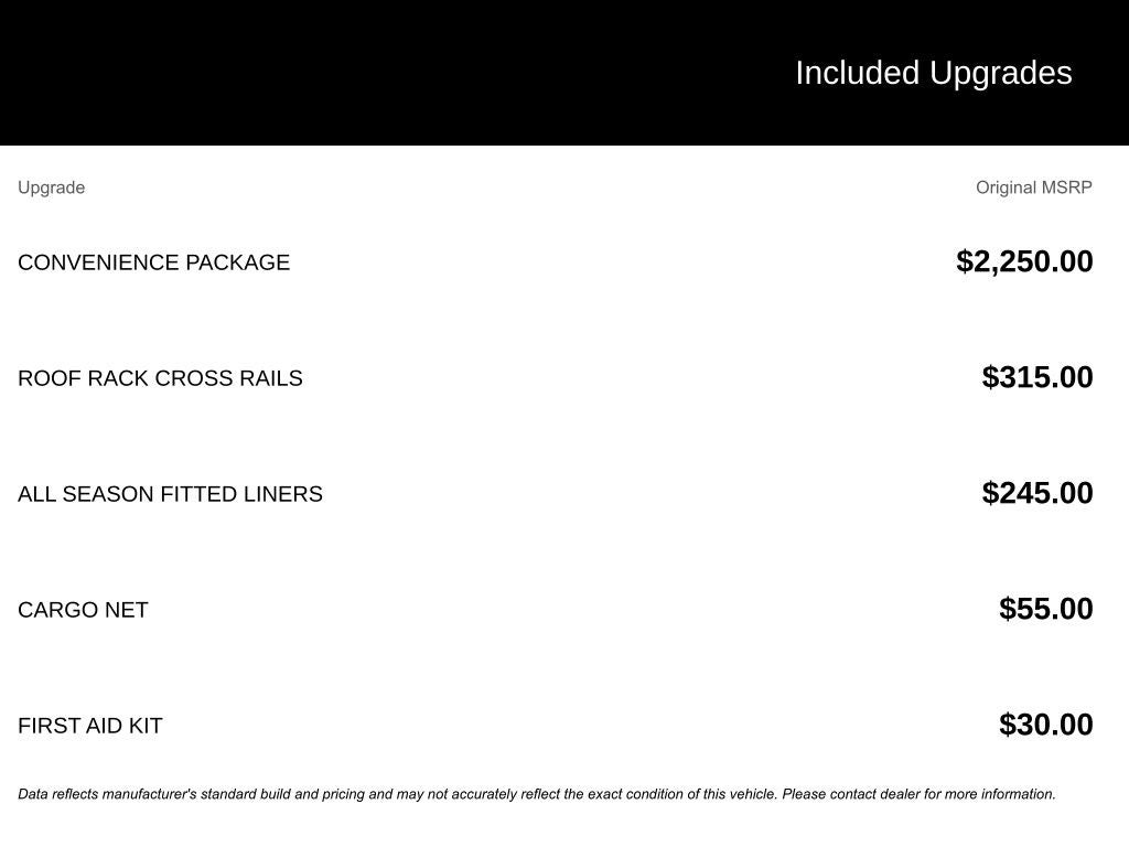 - Chrome Side Windows Trim, Black Front Windshield Trim and Black Rear Window Trim