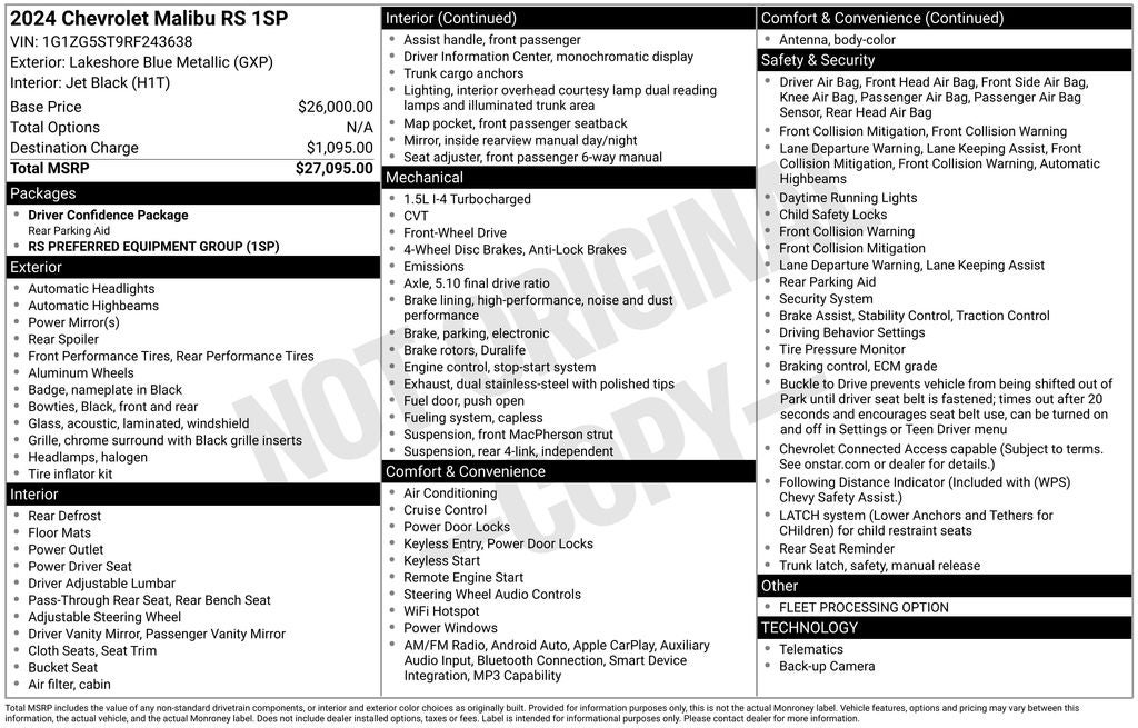 - Vehicle Name: Chevrolet Malibu