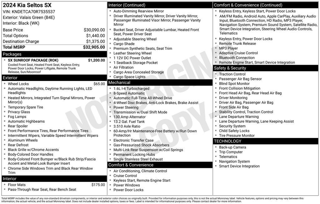Discover the exceptional 2024 Kia Seltos SX, a versatile and well-equipped crossover that's ready to elevate your driving experience. With its striking green exterior, this Seltos combines style, capability, and advanced technology to deliver a truly remarkable package.