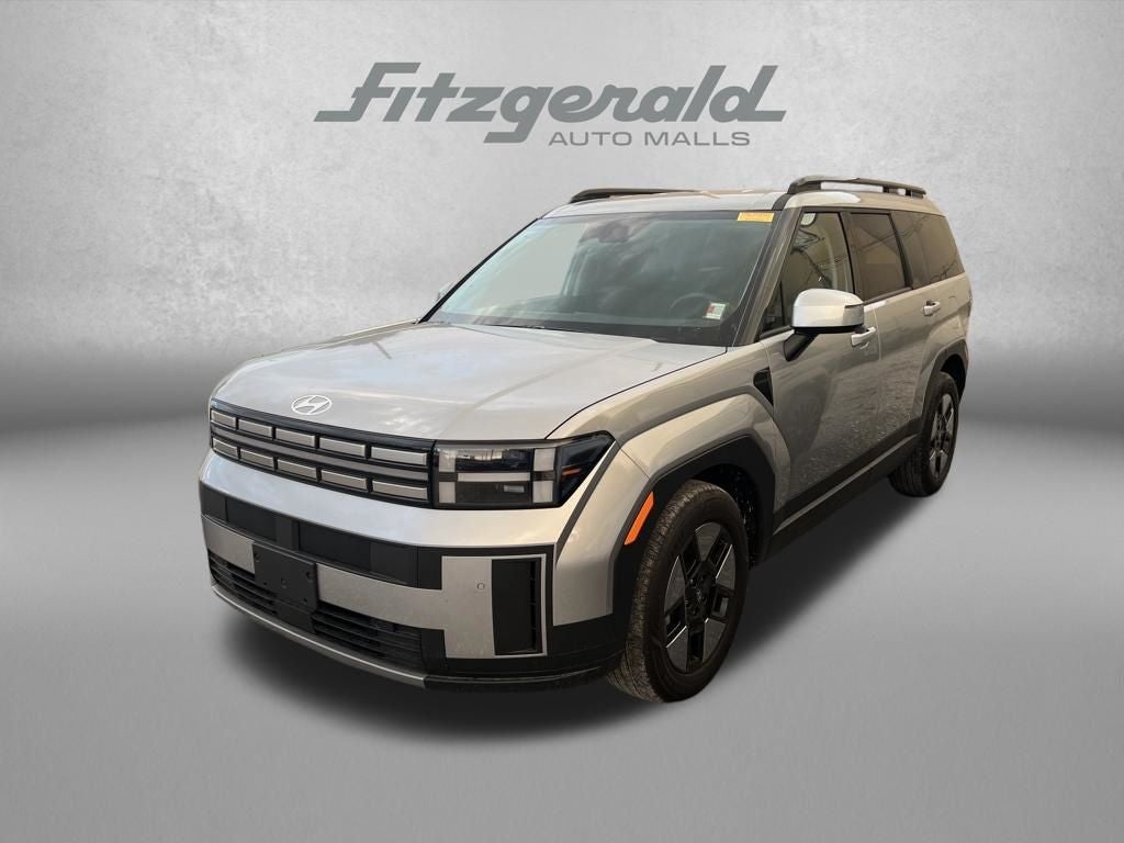 Shimmering Silver 2025 Hyundai Santa Fe Hybrid SEL AWD 6-Speed Automatic with Shiftronic I4 I4, 18 x 7.5J Alloy Wheels, 3rd row seats: bench, Apple CarPlay & Android Auto, Exterior Parking Camera Rear, Front dual zone A/C, H-Tex Leatherette Seat Trim, Heated Front Bucket Seats, Power driver seat, Power Liftgate, Radio: AM/FM/HD Display Audio, Steering wheel mounted audio controls, Turn signal indicator mirrors.